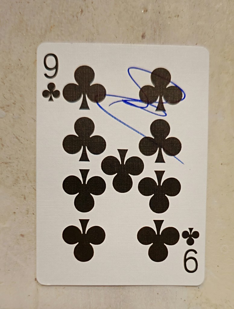 לסיום תוך כדי שיחה עם איתי בסוף ההצגה הגיע א.ר. לבקשתו שמו שמור, קוסם קולגה, צעיר ממני שגם היה בהצגה וביקש להראות לי ולאשתי קסם בקלפים, כמה שאני פחות אוהב קלפים, היא ממש שונאת קלפים.