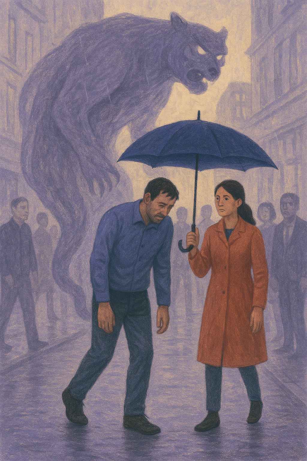 אני הנכה, היא הבריאה. אין סימטריה. גוף אחד עם מפלצת בפנים. פיבי. הגוף השני צריך להסתגל, להבין, לוותר, לחכות.